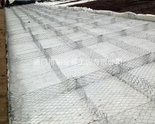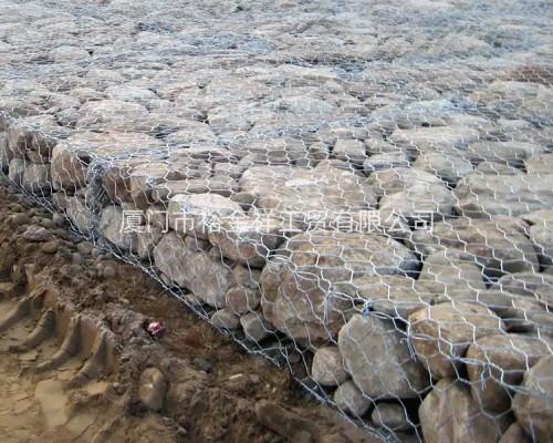 雷諾護(hù)墊也叫石籠護(hù)墊,格賓護(hù)墊,是指由機(jī)編雙絞合六邊形金屬網(wǎng)面構(gòu)成的厚度遠(yuǎn)小于長度和寬度的墊形工程構(gòu)件。雷諾護(hù)墊中裝入塊石等填充料后連接成一體,成為主要用于水利堤防、岸坡、海漫等的防沖刷結(jié)構(gòu),具有柔性、對地基適應(yīng)性的優(yōu)點。